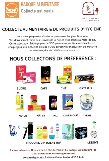 Collecte alimentaire et de produits d’hygiène — 18 au 27 novembre